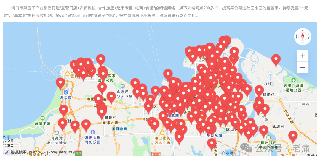 可以说,海口菜篮子的网点覆盖已经初现规模,看这个布局,对居民区的覆盖率是较高的了。