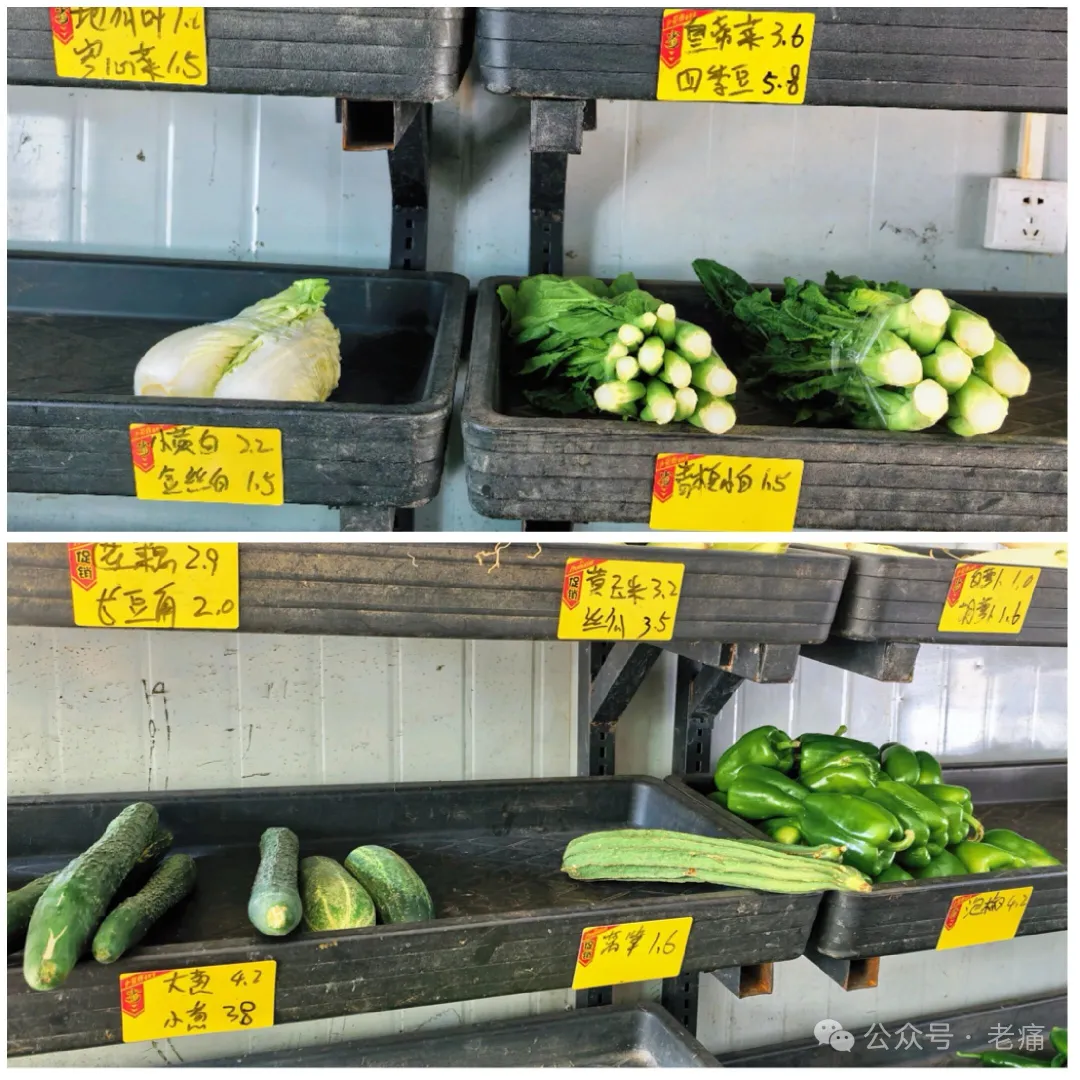 我问过菜篮子网点的工作人员,他们的上班时间是早上5点半,但是要等蔬菜送过来,理好菜后开门时间就是6点半。而一般的集装箱型网点的下班时间是中午12点。