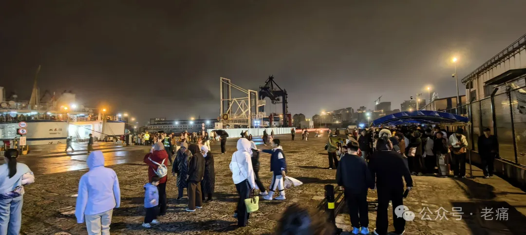 昨晚的码头有零星小雨,海风吹着码头岸边很冷,我们一大帮人全都只能在码头等着。