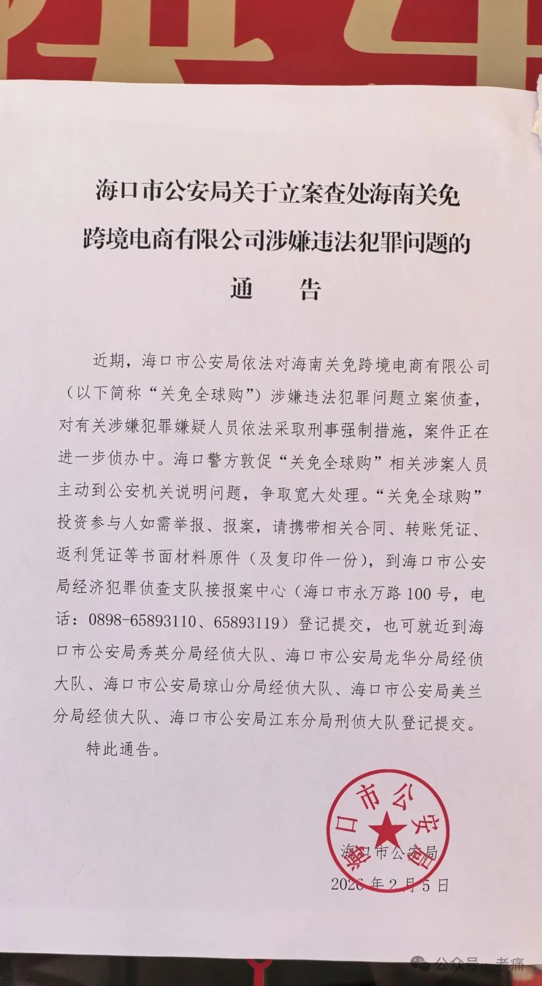 而这个经营场所现在已经被海口市公安局查封,在大门上还张贴有警方的通告,内容如下: