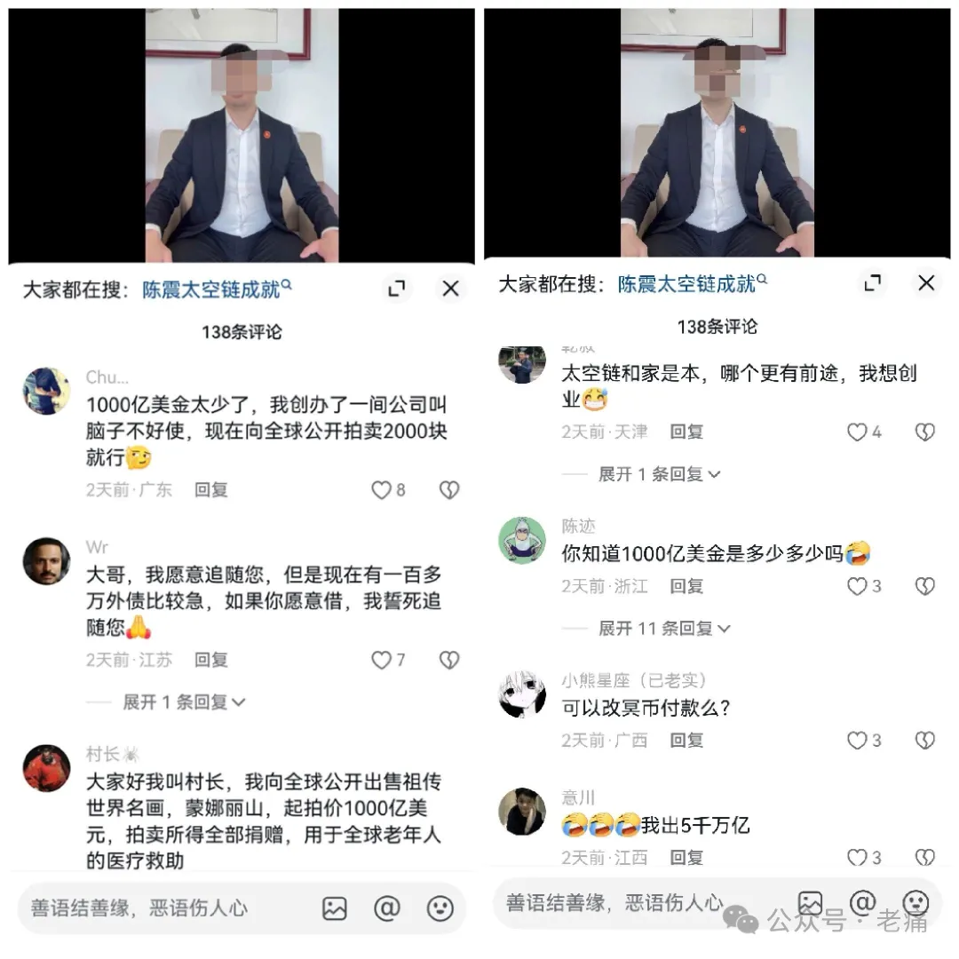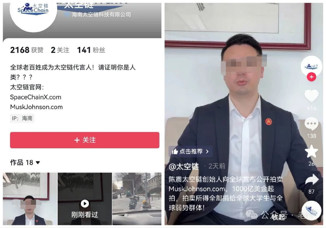 近日,我在短视频平台看到了一个名为“太空链”的用户所发的视频,其主要内容是: