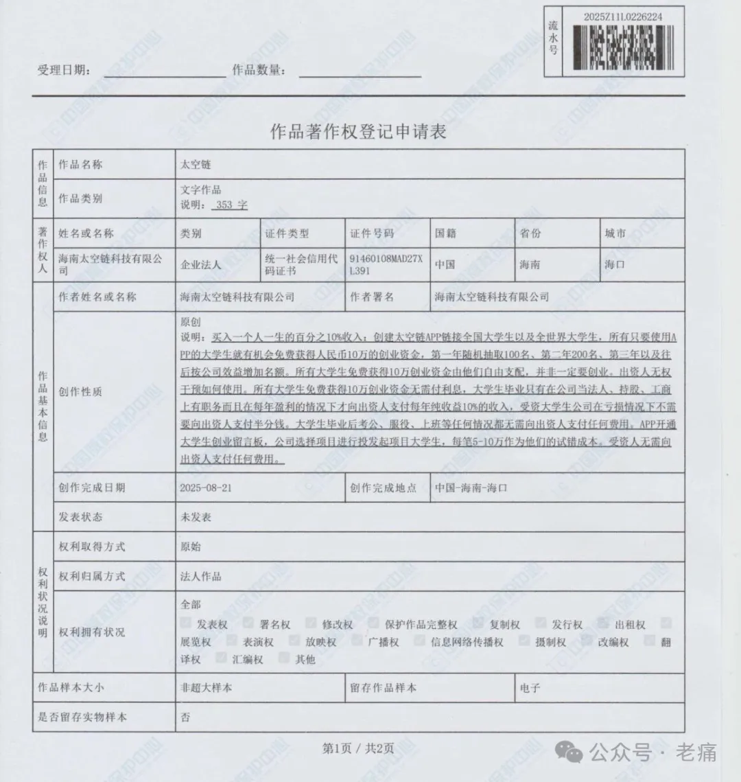 在该用户的主页里也能看到,他们公司全称是“海南太空链科技有限公司”。